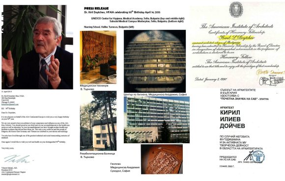 социална хигиена – ИСУЛ и запознава поколения от лекари с основните принципи на проектиране на съвременната болница. През последните двайсет години арх. Дойчев живее и твори в САЩ и е активен сътрудник на Rada Architects в Чикаго.”
