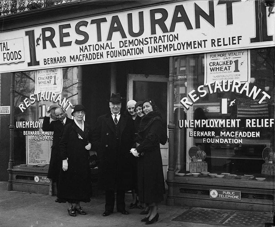 По време на „Голямата депресия“ в Щатите, през 30-те години на 20-ти век, когато нивото на безработицата достига до 25%, в Америка започват да се откриват евтини „Penny Restaurants“ – ресторанти, в които храната струвала 1 цент. Не кухни за бездомни и безработни, не закусвални за бедни, а именно ресторанти.