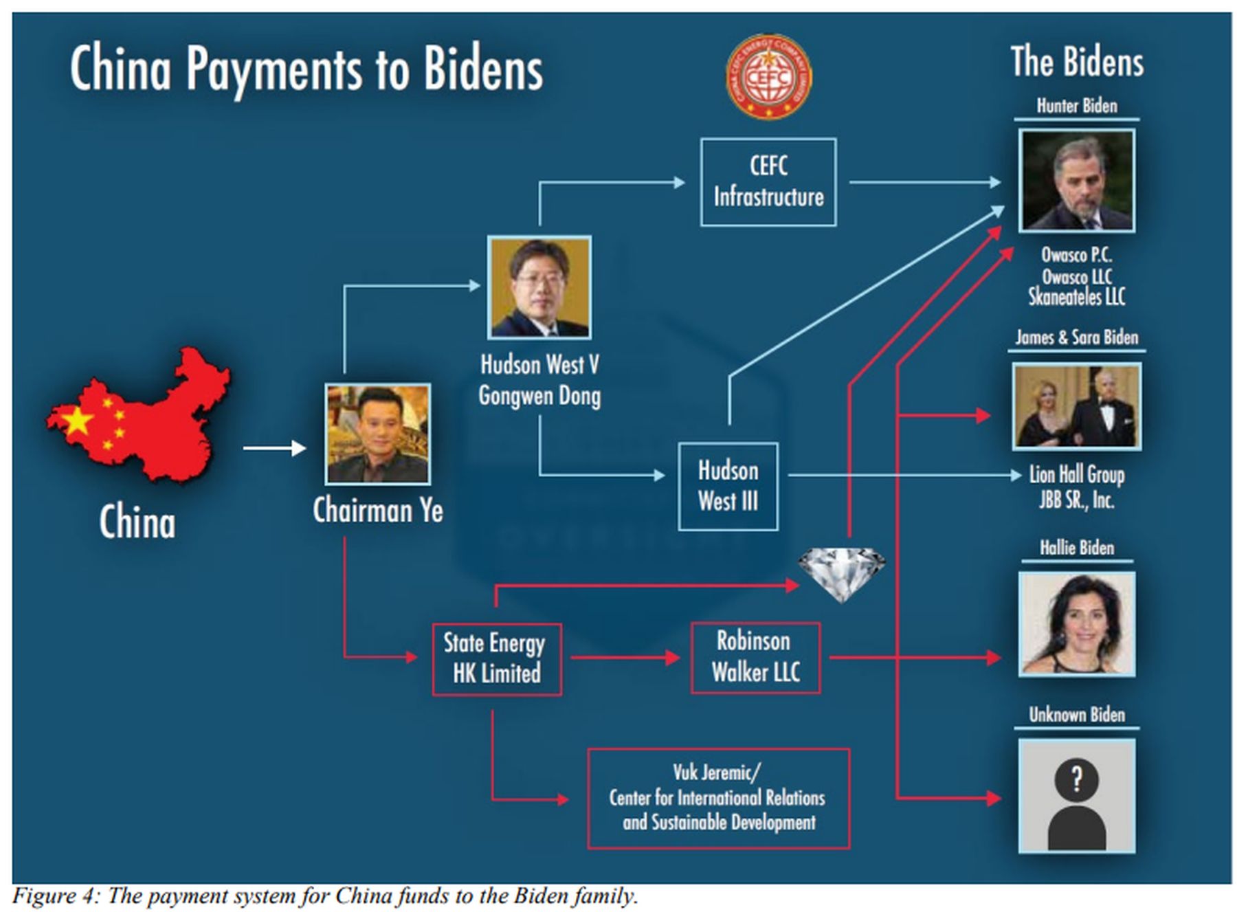 Разследването на комисията се съсредоточи върху LLC фирмите, пряко замесени в отношенията с CEFC Energy – компания, за която се подозира, че е параван на китайското военно разузнаване. Те включват собствеността на Хънтър Байдън Owasco, PC, Hudson West III., LLC; Robinson Walker, LLC; и Rosemont Seneca Bohai, LLC.
