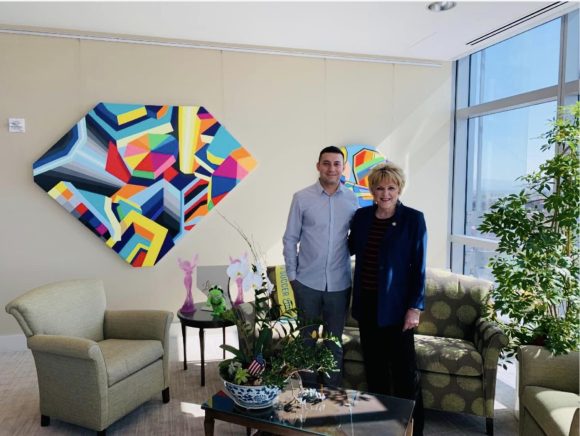 Валентин живее и твори в Лас Вегас и творбите му – картини и арт инсталации са излагани в редица изложби в САЩ и по света. Валентин Йорданов беше част от делегацията, която придружаваше г-н Христов на 24 май тази година, при получаването на прокламацията от кмета на Лас Вегас, г-жа Каролин Гудман, с която тя обяви тази светла дата за ден на българското културно наследство в Града на светлините. Г-жа Гудман отлично познава нашия талантлив художник и също притежава в кабинета си негови творби.