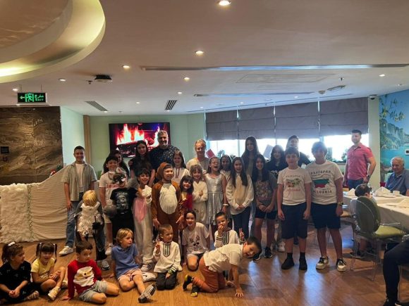 Тази година Коледното тържество пренесе родители и ученици в родината, с елементи от българския фолклор. Традиционната коледна трапеза беше представена като празнична разходка през етнографските региони на България, под формата на коледни селца. На финала на обиколката ги очакваше сладка изненада – торта „Забележителности на България“, на която всеки отбеляза с байрак своя роден край. Оказа се, че имаме ученици и родители от почти всички райони на България.