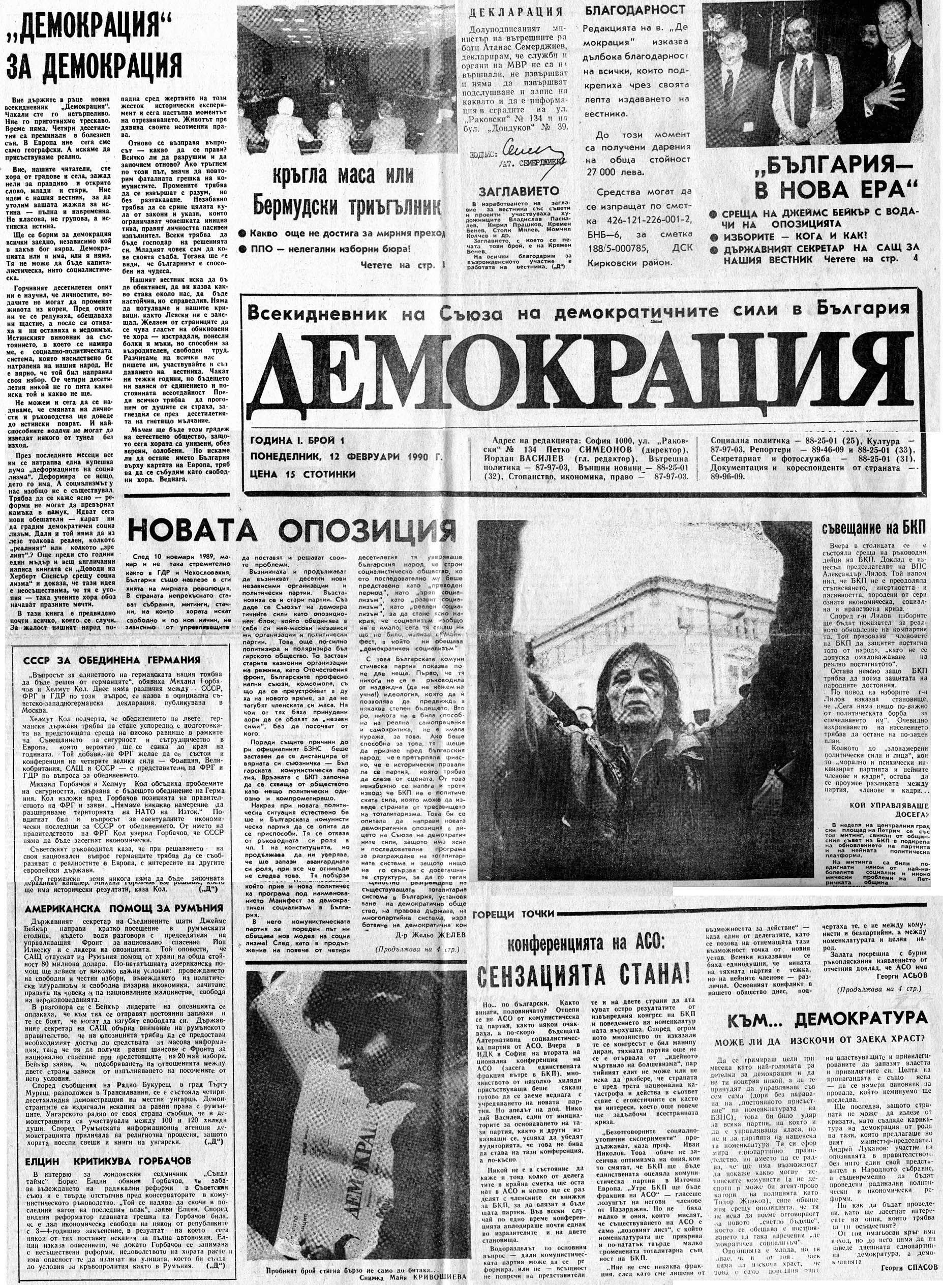 Преди 34 години излезе от печат първият брой на в. “Демокрация”. Снимка на неговата първа страница може да видите тук: