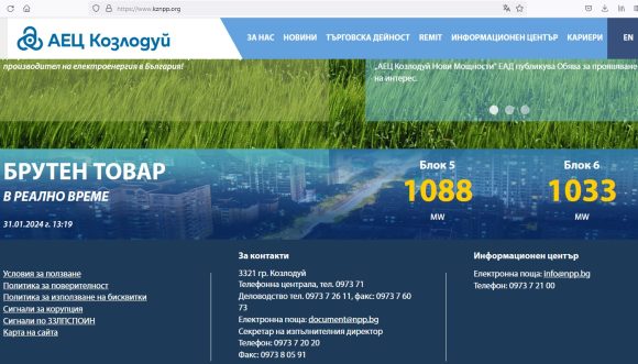 Второ, във втората част на въпроса единствено се посочват количествата на произведената електрическа енергия за последните три изминали месеца (ноември и декември 2023 и януари 2024), без да се направи сравнение с произведената енергия през предишните три години за същите три месеца. Данните на Електроенергийния системен оператор (ЕСО) показват, че двата блока на АЕЦ Козлодуй на 21 януари 2020 г. (денят с максимален товар) са работили с мощност 2161 MW, на 20 декември 2021 – също с 2161 MW (https://www.eso.bg/fileObj.php?oid=3178), а на 26 януари 2022 г. (денят с максимален товар) – 2169 MW (https://www.eso.bg/fileObj.php?oid=4528). Днес, 21 февруари, 17 ч. следобед, в момента на писането на този текст (вж. по-долу скрийншота от сайта на АЕЦ „Козлодуй”) този сбор е 2122 MW (Блок 5 – 1089 MW + Блок 6 – 1033 MW), като положението е подобно от началото на зимния сезон (вж. скрийншотове от 31 януари и 1 февруари).