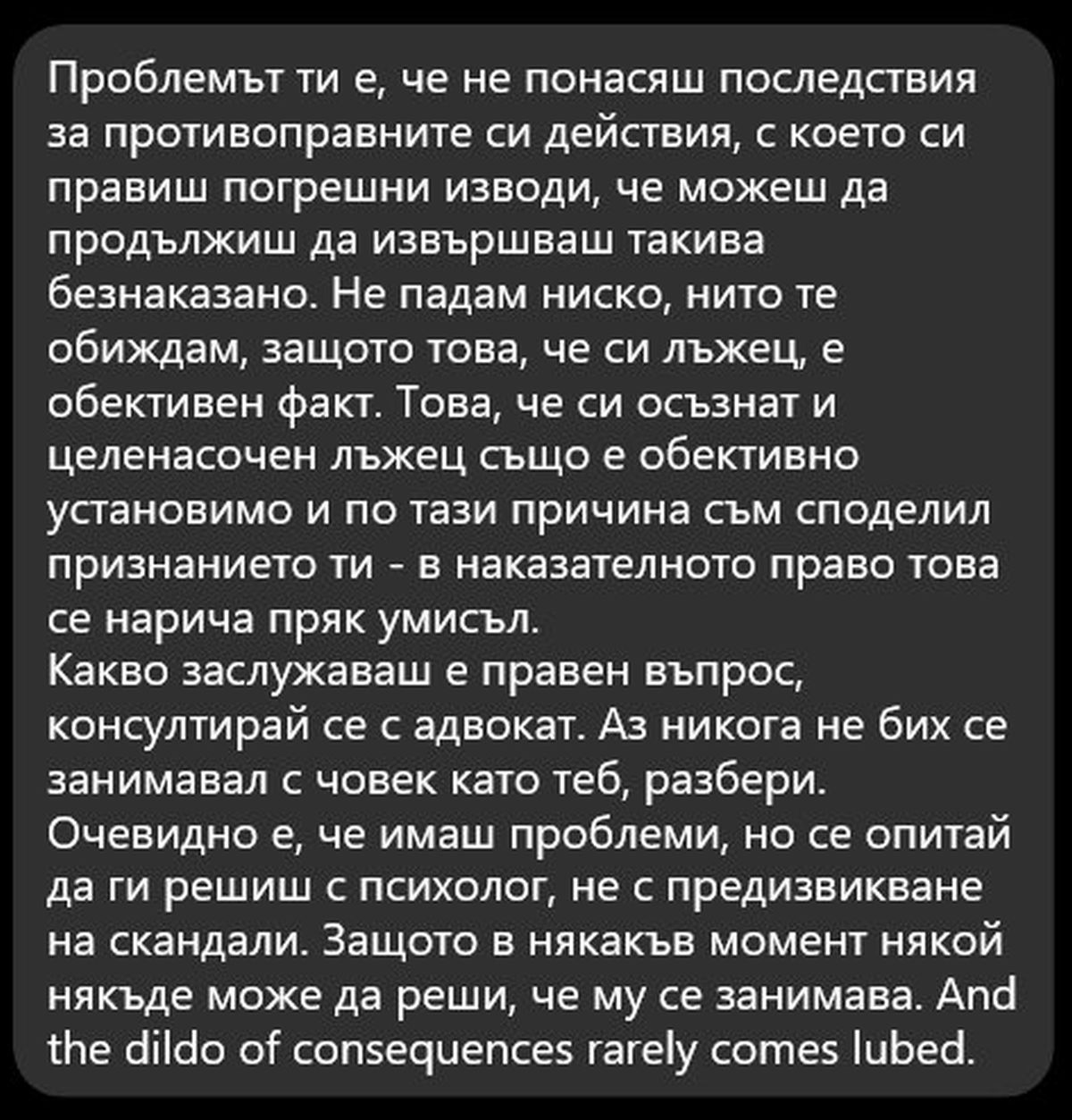 Тук спирам с цитирането и потвърждавам, че вярвам на думите на младежа, защото сам познавам висококвалифициран специалист, който пред мен е изпращал до наши политици и държавни лидери текст със следното съдържание: