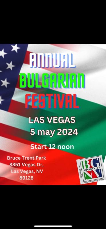 В навечерието на Възкресение Христово (Великден) по православния календар, в Лас Вегас ще се състои ежегодният български фестивал. Събитието е насрочено за 5 май т.г., от 12 до 20 часа, в Bruce Trent Park.