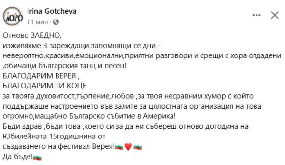 А ето един от първите отзиви след края на Фестивала (на снимката).