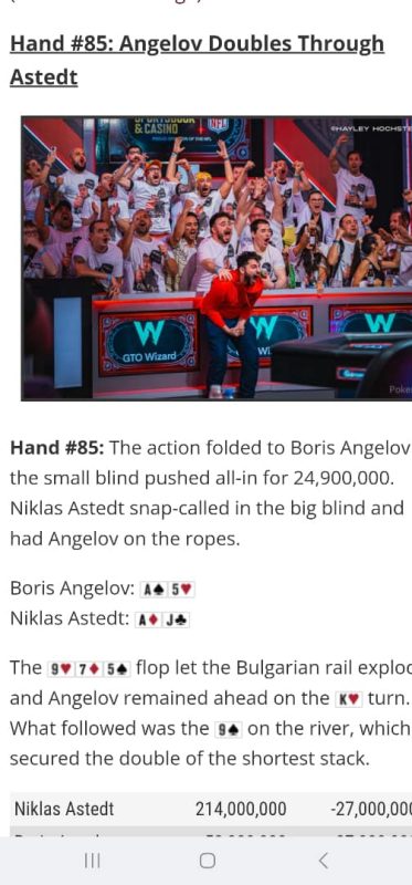 За първи път в историята на българския покер българинът Борис Ангелов достигна до финалната маса на световните серии по покер в Лас Вегас и се представи повече от достойно.
