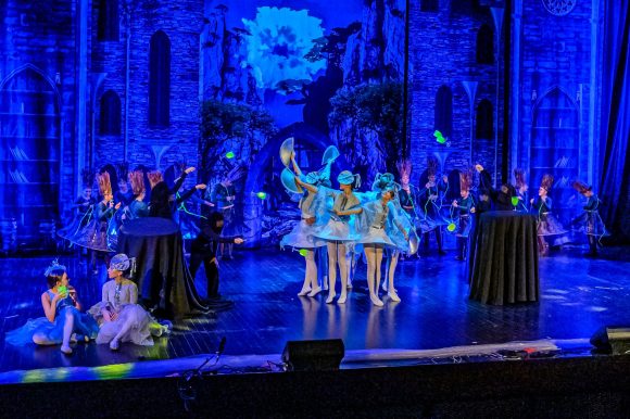 Успехът е още по-впечатляващ, тъй като фентъзи мюзикълът се играе от деца и юноши. Сценичната адаптация е на Радост Младенова-Арабаджиева, която е магистър по балетна режисура, хореография и педагогика. Тя е дългогодишна балерина в трупата на държавната опера в Стара Загора, както и режисьор хореограф на множество авторски мюзикъли „от деца за деца“. В спектакъла участват над 64 деца от трите школи на нейната Детско-юношеска студия за сценични изкуства „Allegra“ – актьорско майсторство, балетна и вокална. За спектакъла са ушити над 200 костюма, ръчно са изработени над 170 корони, както и приказни декори, които се допълват с 3D визуални ефекти, а четири двуметрови кукли оживяват на сцената, задвижвани от деца. Автор на музиката, песните и звуковите ефекти в спектакъла е Алекс Кюн, с който студията работи отдавна.
