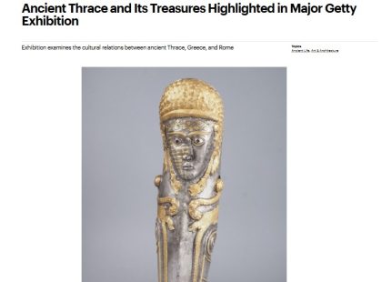 Съкровища на древните траки в Getty Center, Лос Анджелис 1 min read Авторски страници българи зад граница Съкровища на древните траки в Getty Center, Лос Анджелис Eurochicago.com 2024-10-27 Изложбата ще бъде отворена за посетители от 4 ноември т.г. до 3 март 2025 г. Над 90...Read More