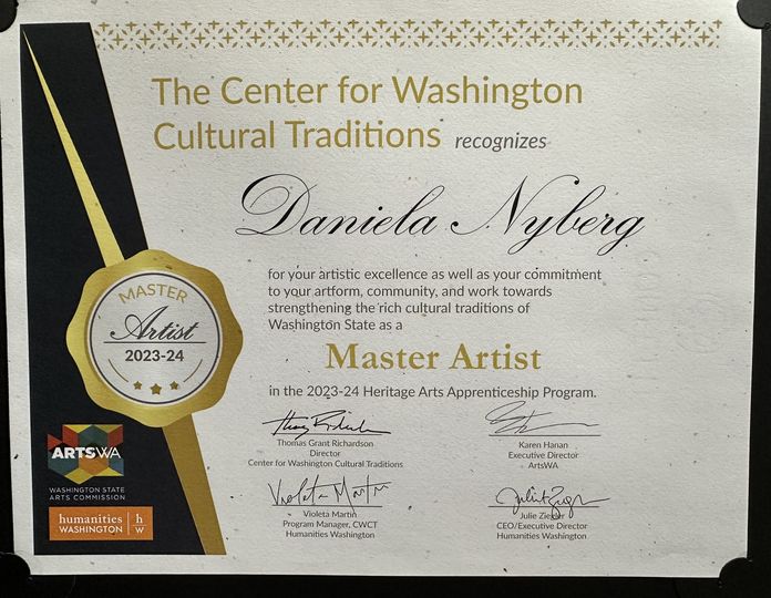 Беше чудесно да получим на 20 ноември това признание (б.р.: вж. снимката по-горе) от Центъра за културни традиции на Вашингтон (Center for Washington Cultural Traditions), придружено от писмо с покана за бъдещо сътрудничество.