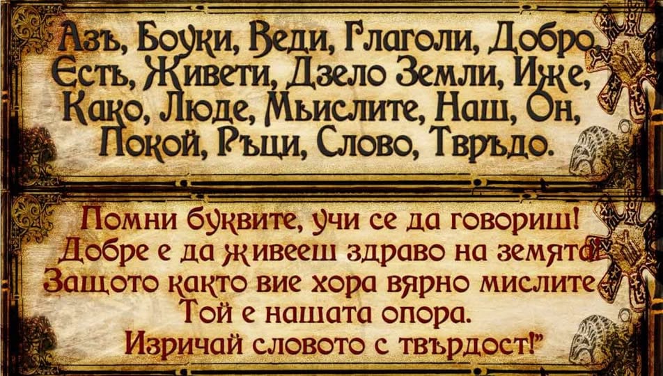 Важнослов: “Аз, Буки, Веди, Глагол, Добро…” – азбуката знай и говори добре. Съвършена семиотика, знаци “с лица от звук” (Христо Фотев) и “смисъл” (Аристотел): Сътворени преди повече от 11 века от Светите Равноапостоли Кирил и Методий. Преведена на съвременен български език, азбуката ни изпраща послания: