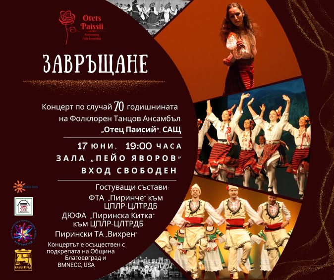 Уникалният български фолклорен танцов ансамбъл към BMNECC „Отец Паисий“ – Питсбърг се завръща в България след 30 години и с нетърпение очаква срещата с българската публика!