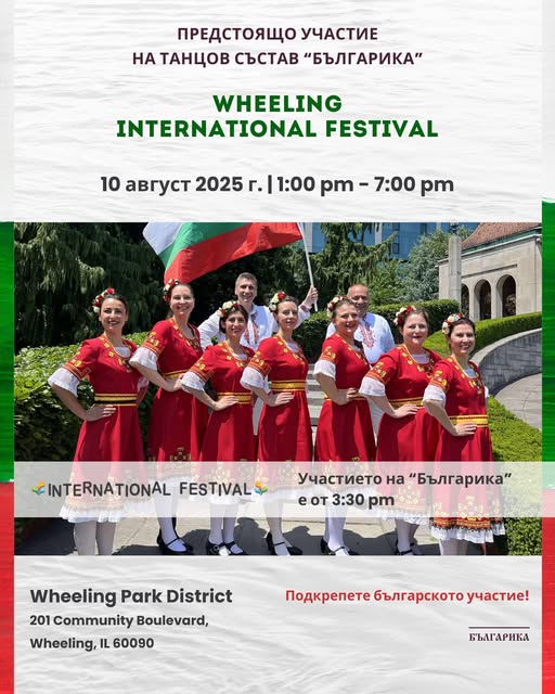 Танцов състав „Българика“ ще представи България на Wheeling International Festival 2025 – фестивал, който обединява култури от цял свят в едно цветно и весело събитие.