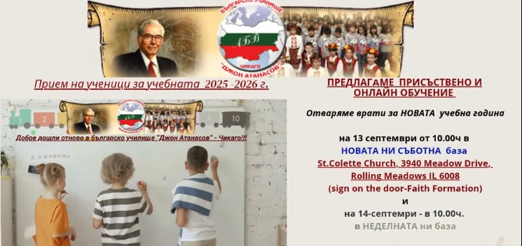 Българско училище „Джон Атанасов“ – Чикаго отново отваря вратите на учебни си бази, за да приеме своите ученици през новата учебна година.
