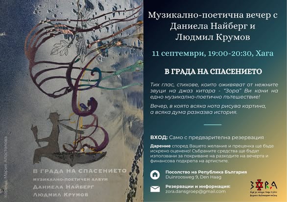 Поредицата започва в четвъртък, 11 септември, с уютна музикално-поетична вечер – среща за ценители на поезията, в която стиховете на Даниела ще оживеят под нежните акорди на китарата на Людмил Крумов.