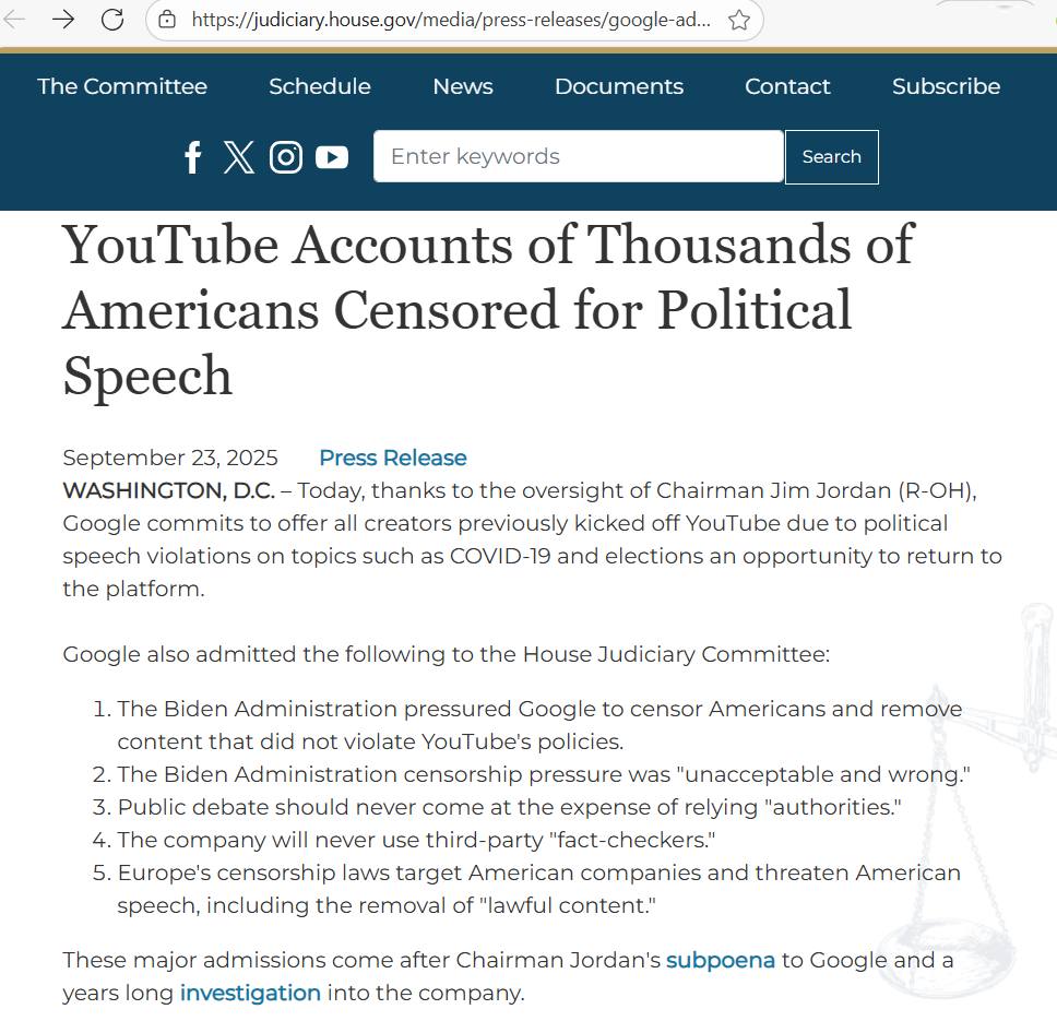 Изслушването остави ярки реплики. Конгресмен Джим Джордан заяви: „Това не е просто цензура — това е съучастие между правителството и корпорациите срещу американския народ.“ Самият адвокат на Google призна: „Направихме грешки. Натискът беше реален. И няма да позволим да се повтори.“