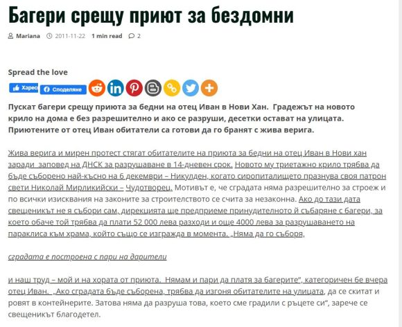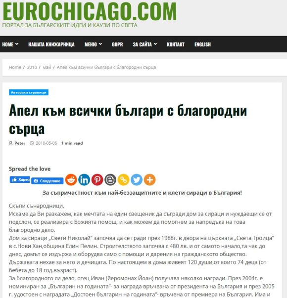 Не познавах лично отец Иван, но отдавна следя много от неговите дела. През годините, на страниците на нашия интернет портал в Чикаго, неведнъж сме подкрепяли неговите каузи* (вж. по-долу снимки от наши публикации отпреди повече от 15 години). Едва по-късно разбрах, че сред дарителите са били и моята сестра, както и покойната ми майка. Така отец Иван успяваше да обедини не само бездомни и безправни хора, но и енергията на още много семейства.