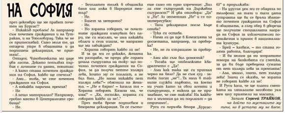 Изчетох целия брой и си спомних за времето, когато този вестник бе любим на мнозина. Днес почти няма любими вестници, то почти няма и вестници. Някои се опитват да оцеляват онлайн. Може би някой от Вас също ще се зарадва като мен. Това е вестникът на сериозните неща, споделени с чувство за хумор, за да ги преглътнем по-лесно и все пак да ни накарат да се замислим.