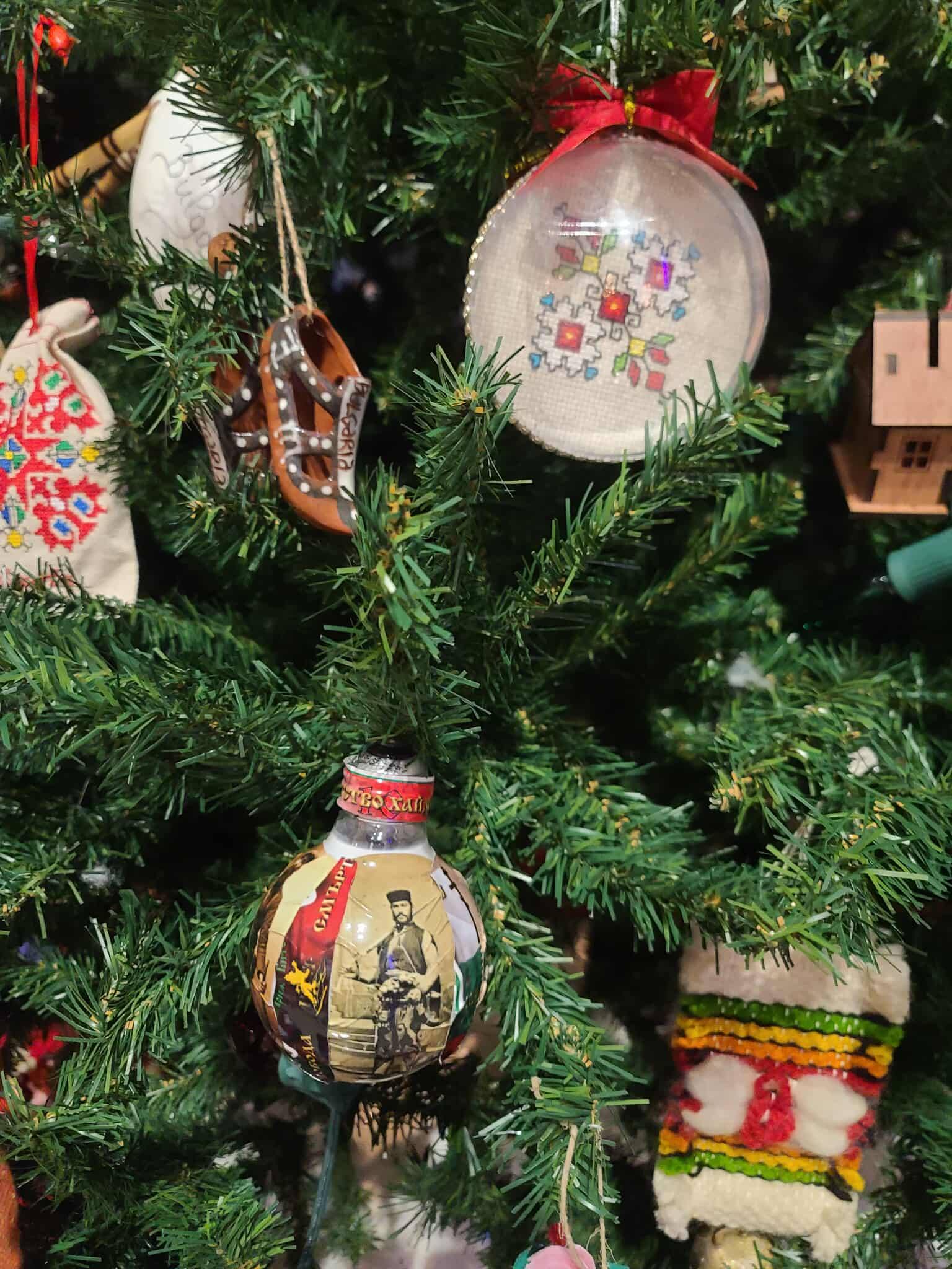 Българската елха, украсена от група ентусиасти*, е сред най-цветните и автентични. Украсата включва ръчно изработени орнаменти, които представят традиции от различни региони на България – сурвачки, кукерски маски, миниатюрни народни носии и символи на коледарите, които пеят благословии в нощта преди Рождество.