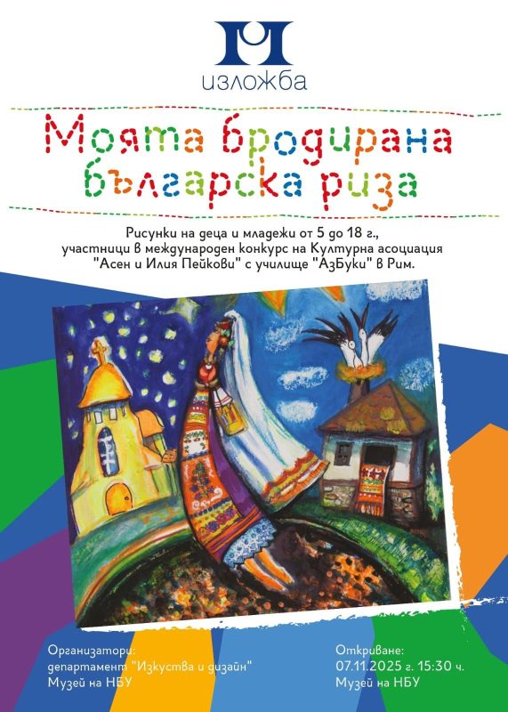 На 7 ноември 2025 г. (петък), от 15:30 ч. местно време, в Музея на Нов български университет в София ще бъде открита изложбата „Моята българска бродирана риза“, с рисунки на деца и младежи от 5 до 18 години – участници в деветото издание на едноименния международен конкурс.
