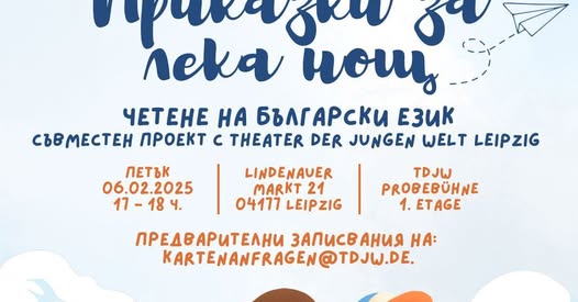 Българскo културно сдружение “Пенчо Славейков” в Лайпциг (Bulgarischer Kulturverein „Pencho Slaveykov“ e.V.) кани малки и големи любители на приказките на литературно четене на български език. Ето какво пишат организаторите за събитието: