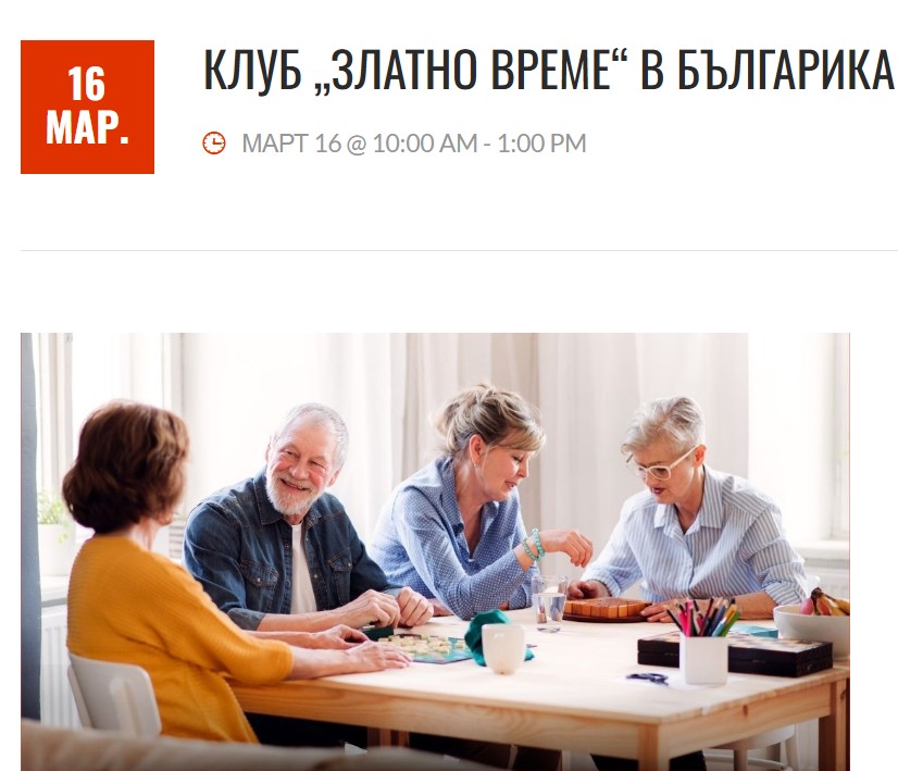 Клуб „Златно време“ е пространство за хора 65+, създадено за общуване, активност и приятни моменти сред българската общност. Всяка седмица се събираме, за да споделим разговори, да научим нещо ново и да се заредим с добро настроение.