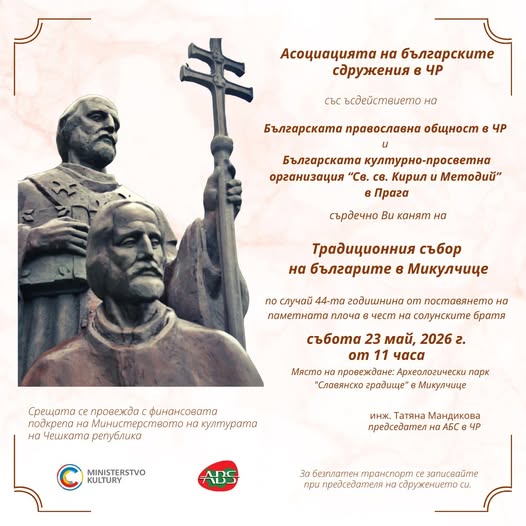 Асоциацията на българските сдружения в Чешката република, със съдействието на Българската православна общност в Чешката република и Българската културно-просветна организация „Св. св. Кирил и Методий“ в Прага, организират поредния Традиционен събор на българите в Микулчице.
