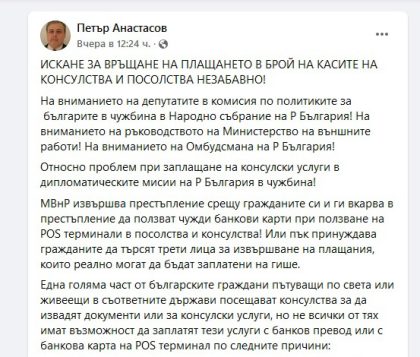 Нашият сънародник Петър Анастасов се е обърнал към Комисията по политиките за българите извън страната към Народното...