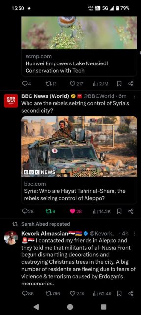 От Алепо пристигат съобщения, че в западните части "умерените" ислямисти свалят и унищожават традиционната коледна украса в...