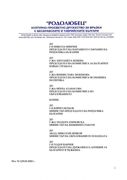 Писмото е свързано с критериите за оценяване на българските задгранични медии, във връзка с отпуснатите тази година...
