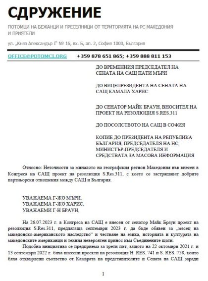 Обръщението е относно твърдение на президента на РС Македония Стево Пендаровски, че дългогодишните нерешени вътрешни проблеми в...