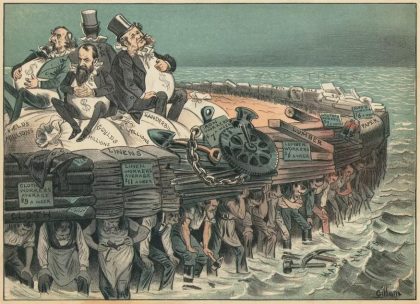 Виждате политическа карикатура от 1883 г. насочена към конкретни исторически личности. На нея са изобразени богатите бизнесмени...